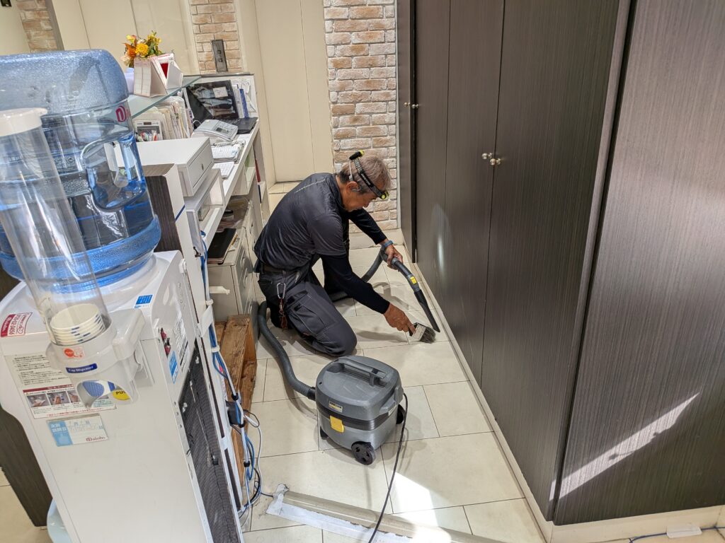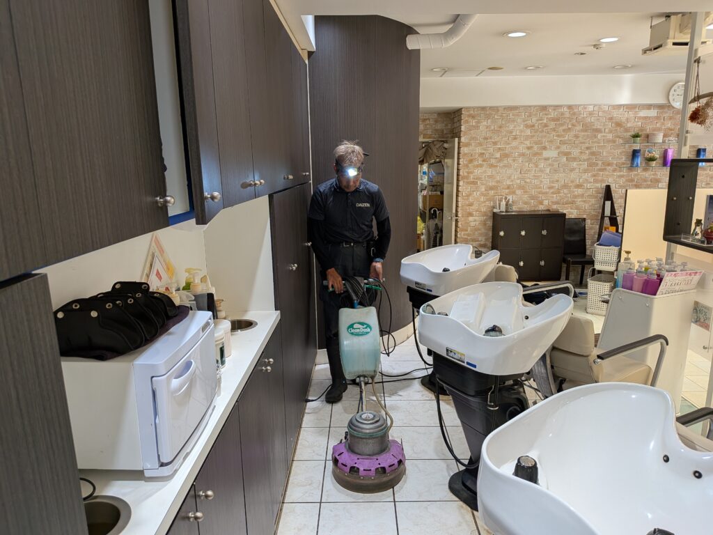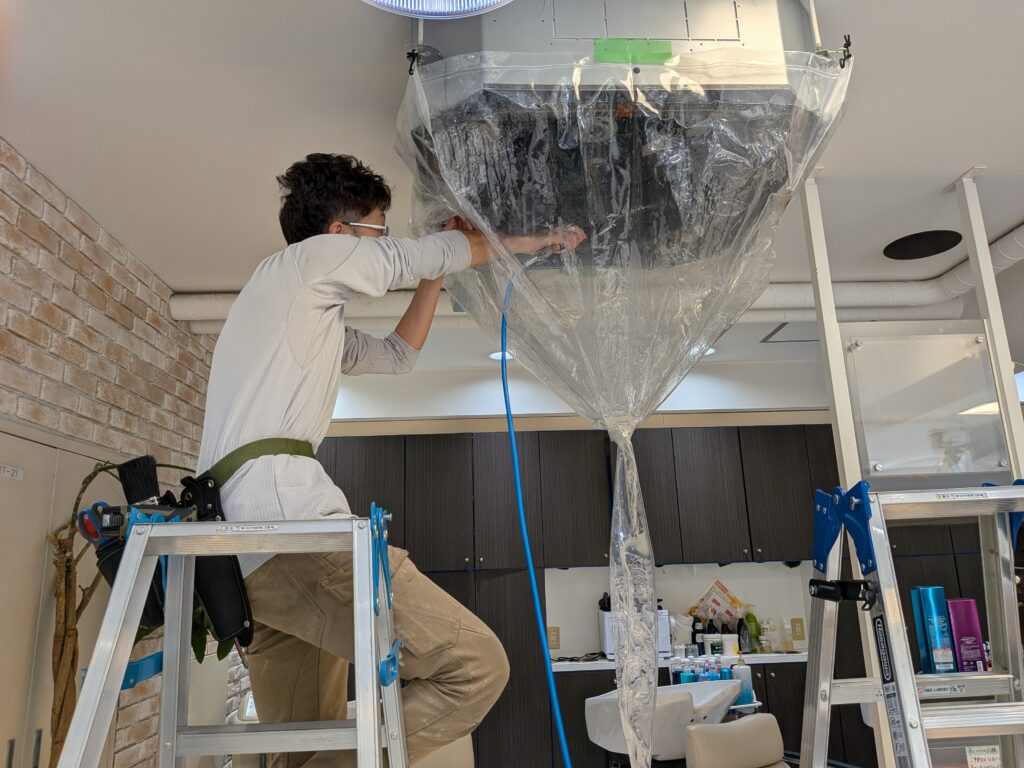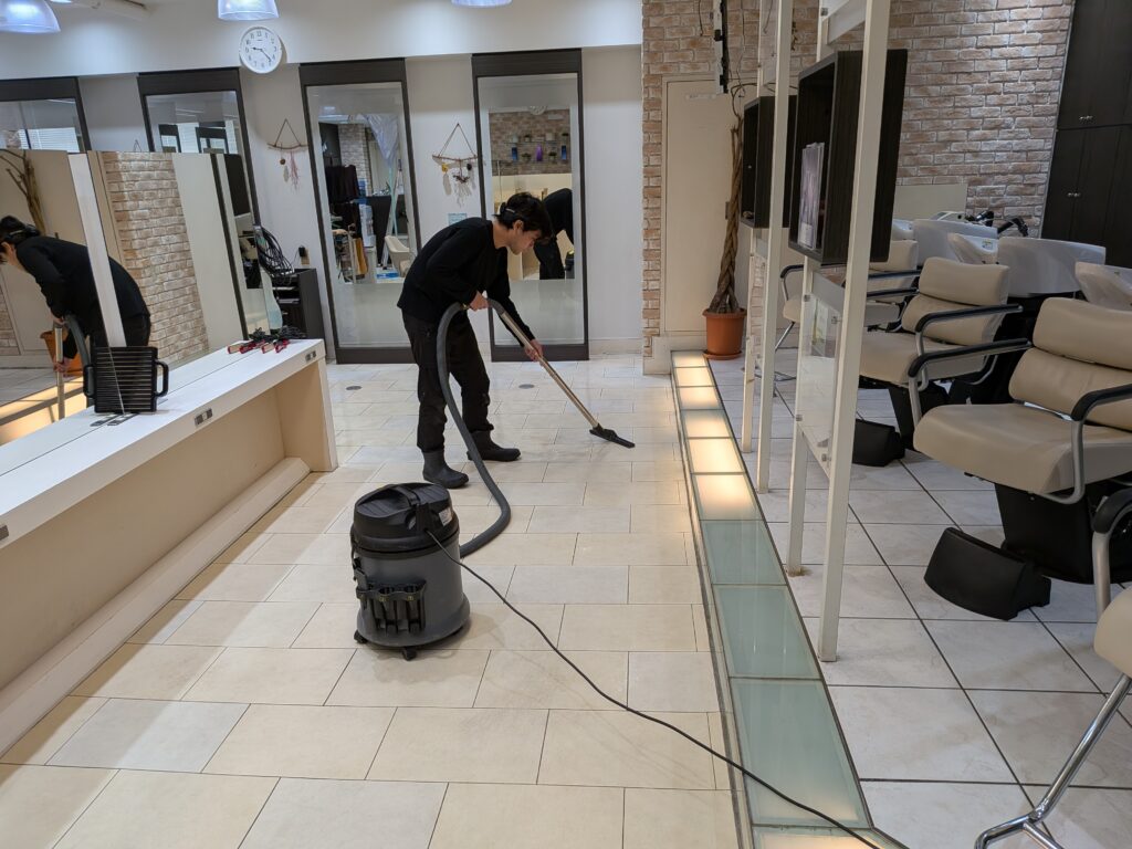 三鷹市の美容院M様の2店舗の美容室床面洗浄クリーニングと業務用天カセエアコン5台の年末大掃除クリーニングを実施しました!